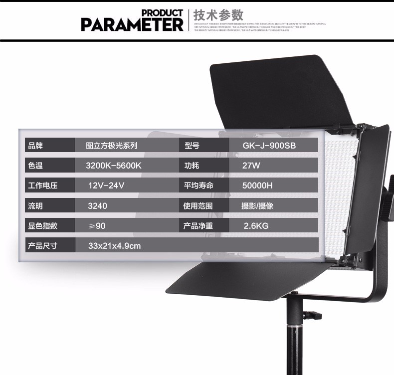 Tolifo圖立方GK-J-900SB極光LED影視燈27W雙調(diào)光,可用于演播室燈光、新聞采訪、微電影拍攝、焦點(diǎn)訪談的攝影攝像