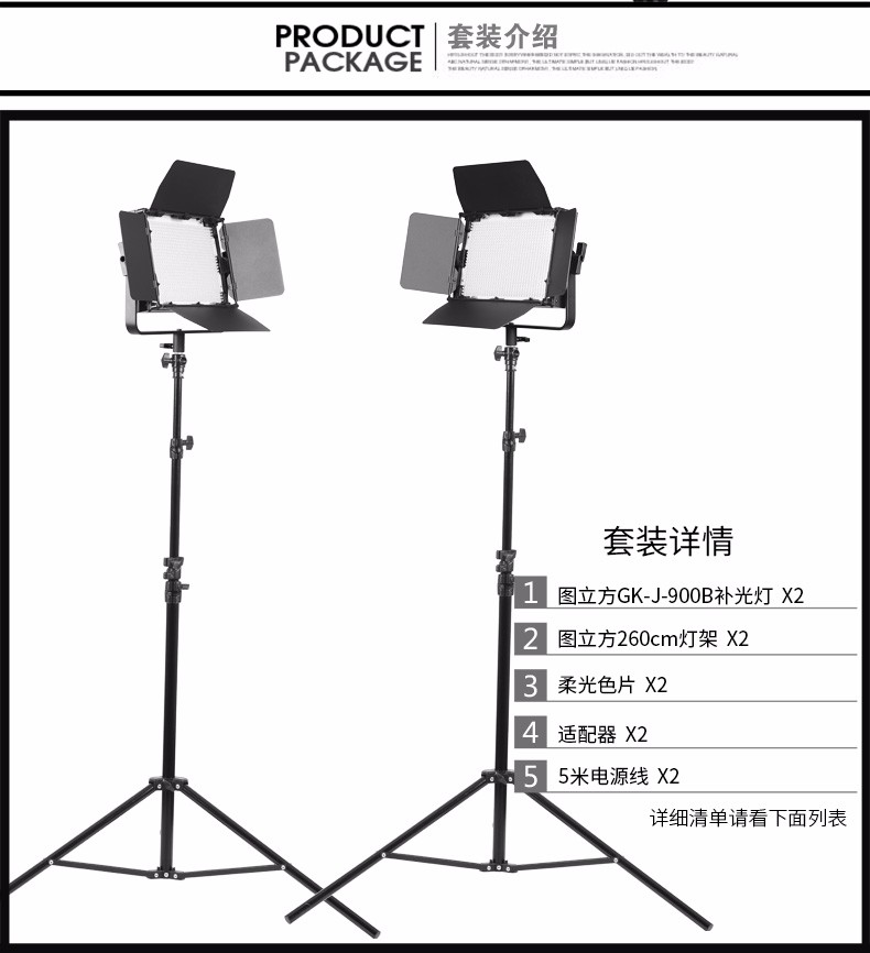 Tolifo圖立方GK-J-900SB極光LED影視燈27W雙調(diào)光兩燈套裝