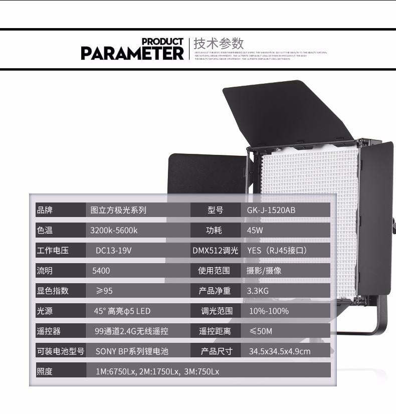 極光LED影視燈45W雙調(diào)光兩燈套裝