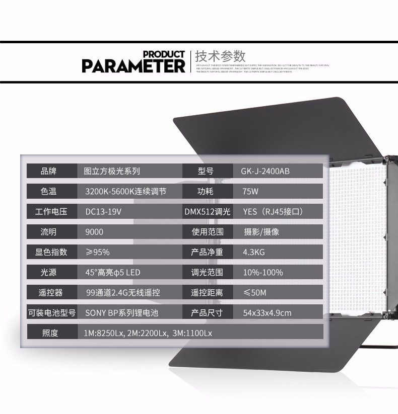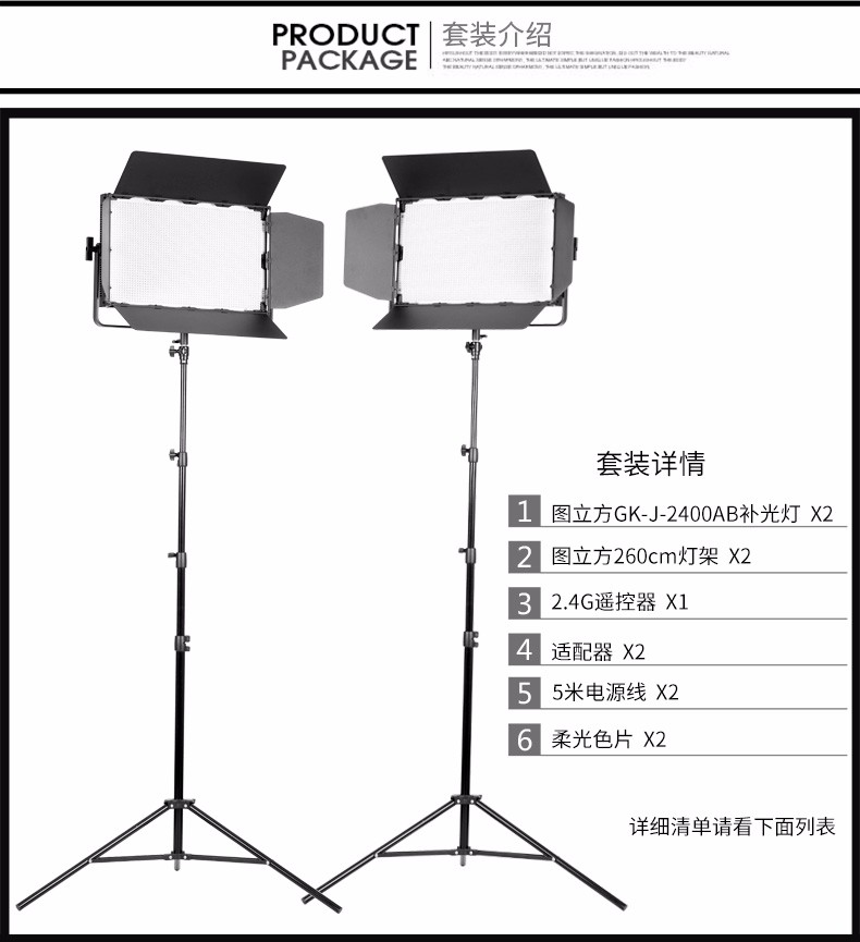 Tolifo圖立方GK-J-2400AB極光LED影視燈75W雙調(diào)光兩燈套裝