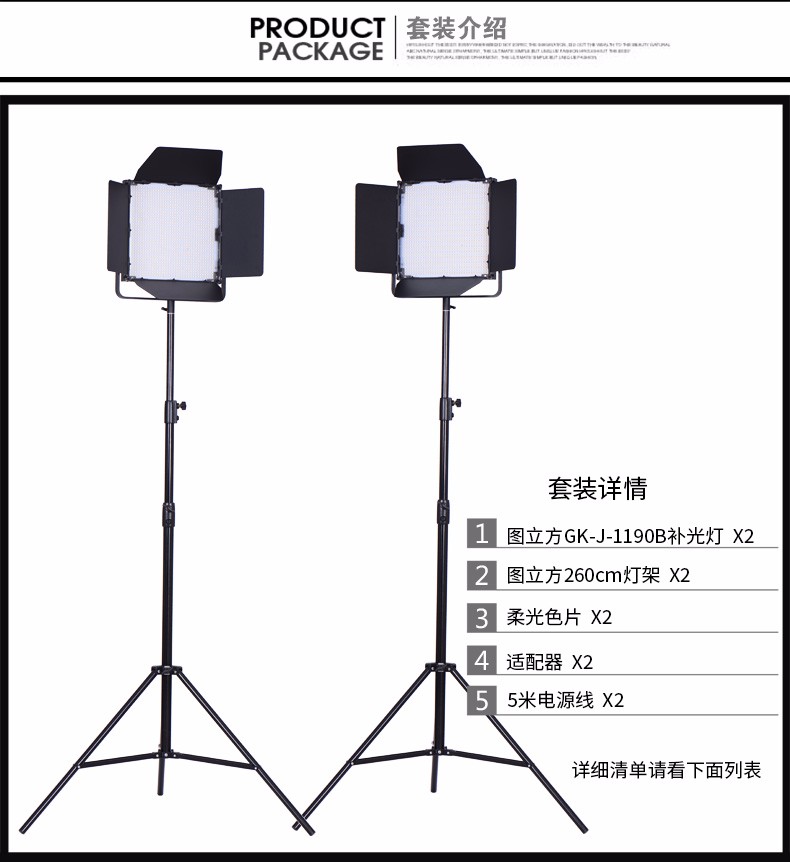 Tolifo圖立方GK-J-1190B極光LED影視燈75W雙調(diào)光兩燈套裝