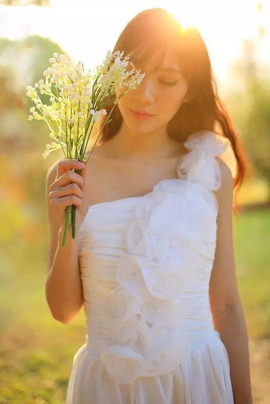 這張照片中,陽光正處于被攝對象的后面,此時模特的頭發(fā)被陽光沐浴著,用高速TTL閃光為模特頭面部和頭發(fā)陰影補(bǔ)光主要讓模特臉部曝光正常,柔和的夕陽光線給整個畫面營造了金黃色的氣氛, 非常棒的糖水人像片!