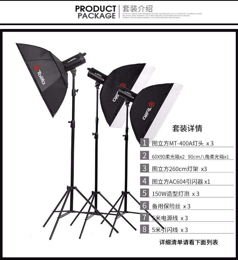 Tolifo圖立方曼圖MT-400A攝影閃光燈3燈+八角柔光箱套裝