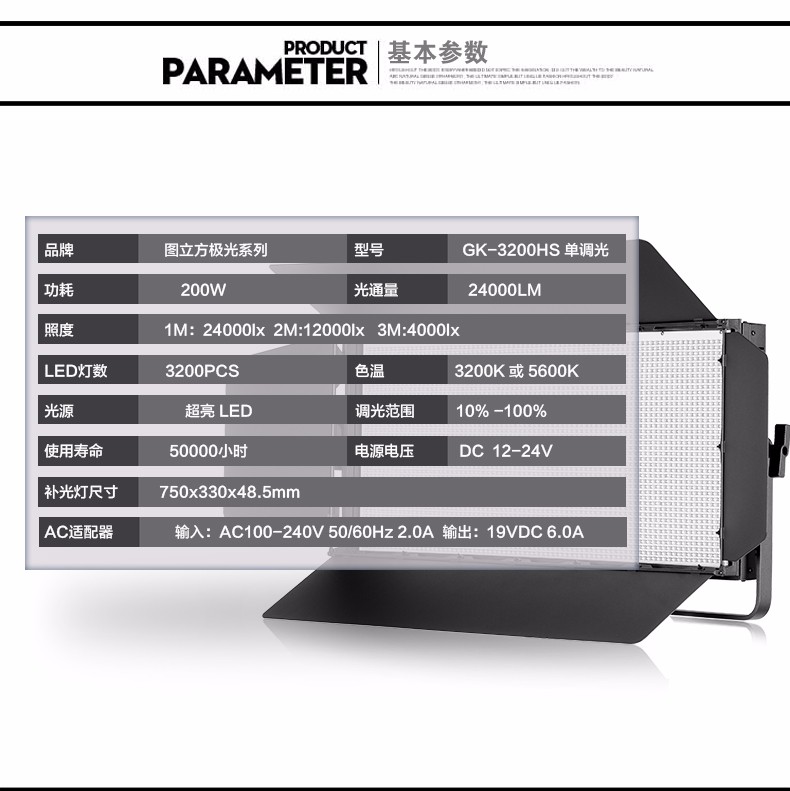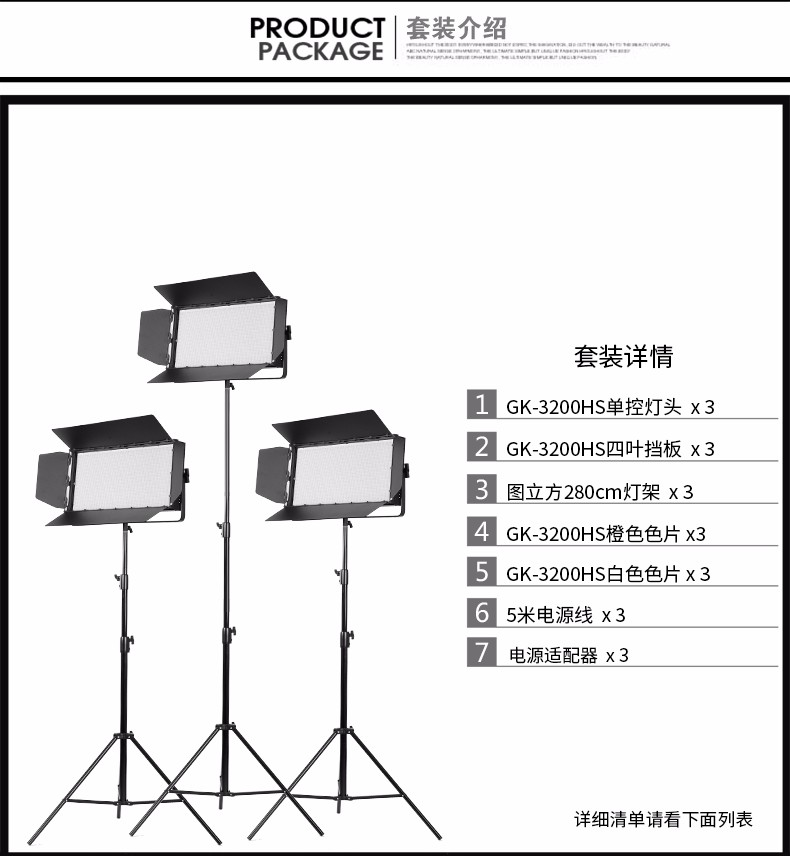 Tolifo圖立方GK-3200HS極光LED影視燈200W單調(diào)光三燈套裝