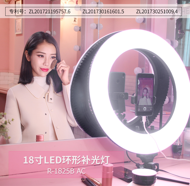 Tolifo圖立方R-1825B-AC環(huán)形LED直播補光燈雙色溫