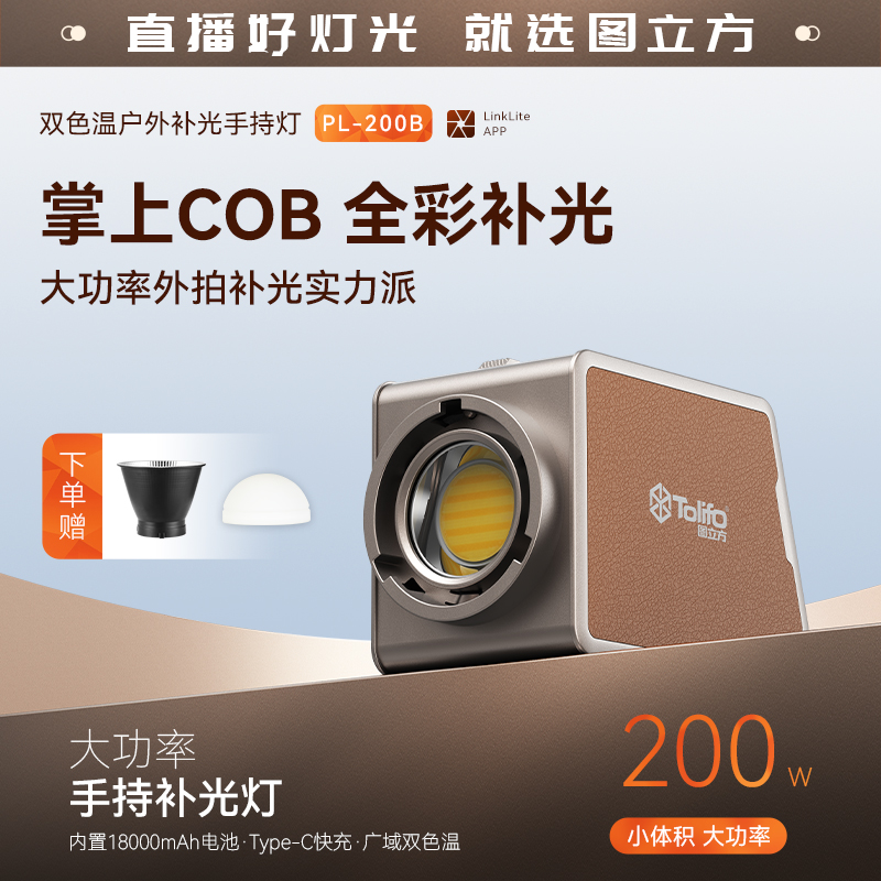 圖立方雙色溫100W掌上COB燈直播補(bǔ)光燈內(nèi)置電池便攜式室內(nèi)戶外攝影燈人像視頻柔光燈打光燈LED影室聚光燈