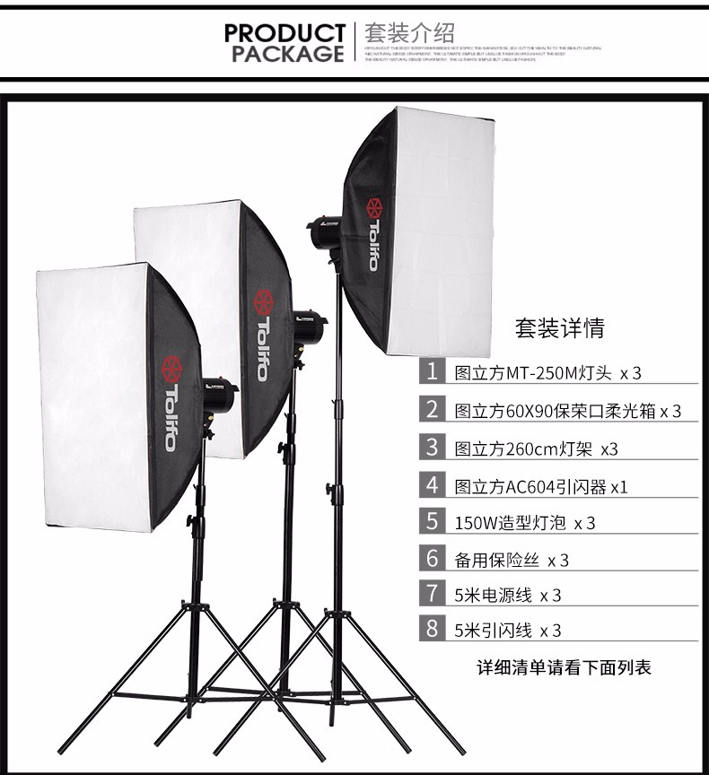 Tolifo圖立方曼圖MT-250M攝影閃光燈三燈套裝攝影棚