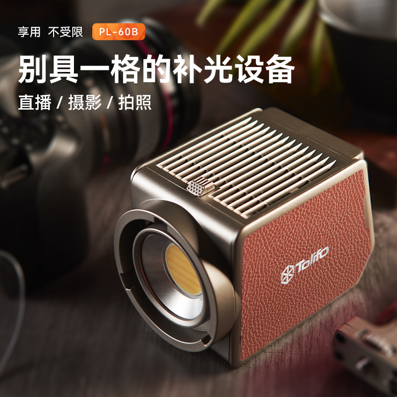 圖立方攝影燈60W戶外直播補(bǔ)光燈便攜影棚拍攝拍照直播常亮燈視頻美食影視打光燈夜景外拍燈人像柔光燈COB燈